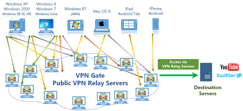 VPN Gate Academic Experiment Project is an online service as an academic research at Graduate School of University of Tsukuba, Japan. The purpose of this research is to expand the knowledge of "Global Distributed Public VPN Relay Servers" .